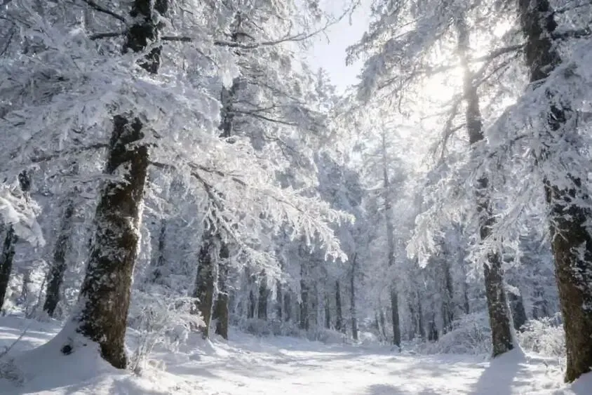 雾凇林海:得益于华西雨屏带充足的水汽与山地温差,西岭雪山的雾凇兼具北方的磅礴与南方的灵秀。12月至次年2月,山间树枝挂满晶莹冰挂,漫步熊猫林栈道,仿佛穿行于冰雪童话世界,雾凇形成需气温低于-2℃且湿度达标,寒潮过后的晴天最易邂逅。