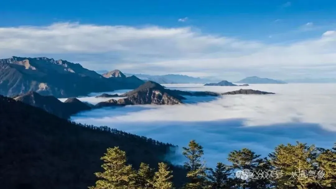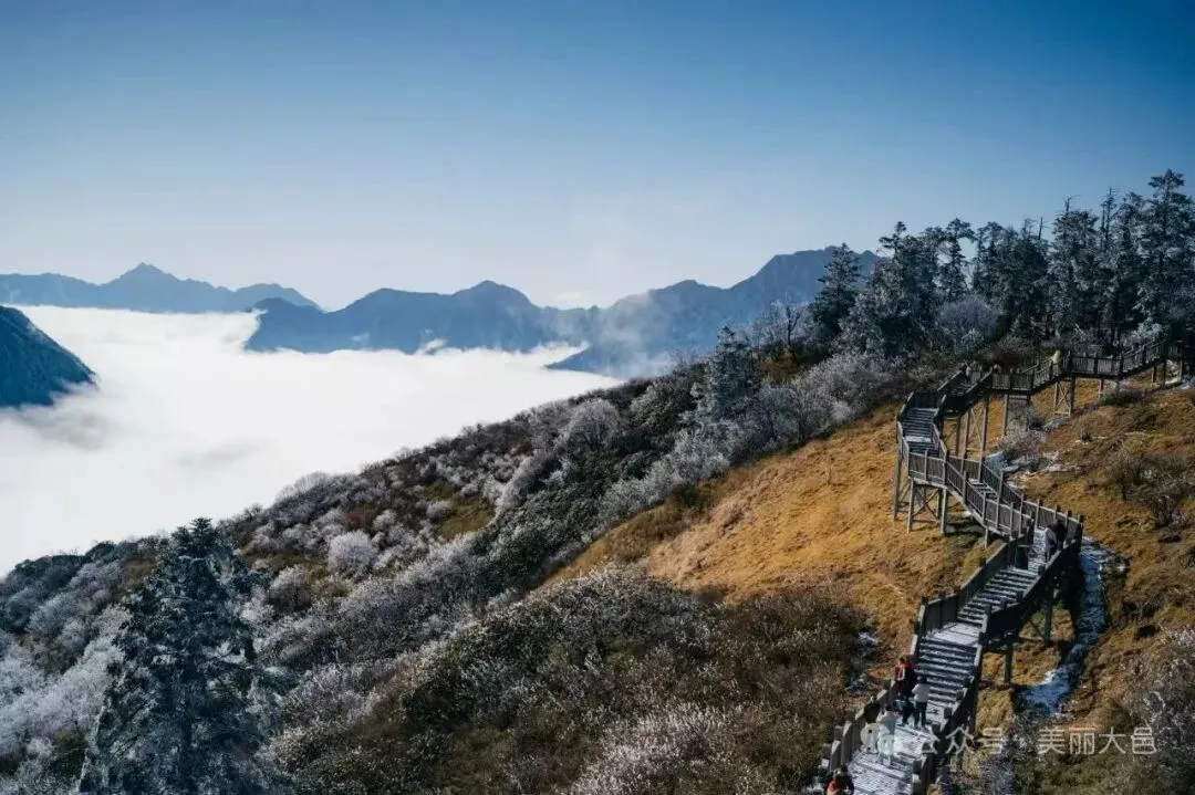 云海与日照金山:冬季高海拔区域气温低至-8℃,水汽遇冷凝结形成的云海更为厚重壮观。清晨登上日月坪,当第一缕阳光洒向海拔5364米的大雪塘主峰,金色霞光与皑皑白雪交相辉映,日照金山的盛景堪称视觉盛宴,最佳观赏时段为7:30-9:00(需提前查询日出时间)。