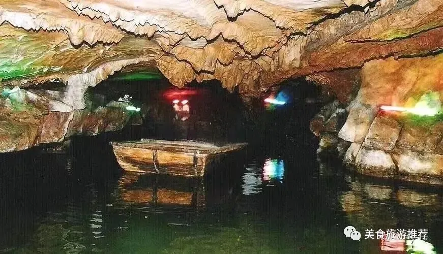 下洞外面有一个石陡坎,大雨过后,流泉飞瀑直泻沟底,奔放澎湃,故名瀑布洞。与下洞相连的水洞,是一条古老的地下暗河。游人至此,可泛舟河上,荡漾其间,感受别样的静谧。