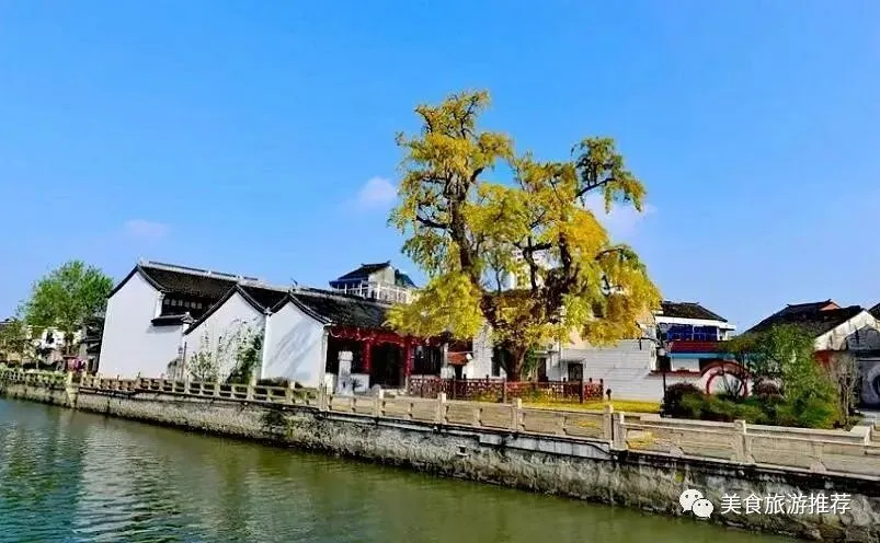 古镇里,最知名的是城隍庙门口那棵参天古银杏,由三国时期孙权的母亲吴国太亲自种植,距今已有1800年历史,如今依然枝繁叶茂,充满生机,被誉为“生物界的奇迹”。