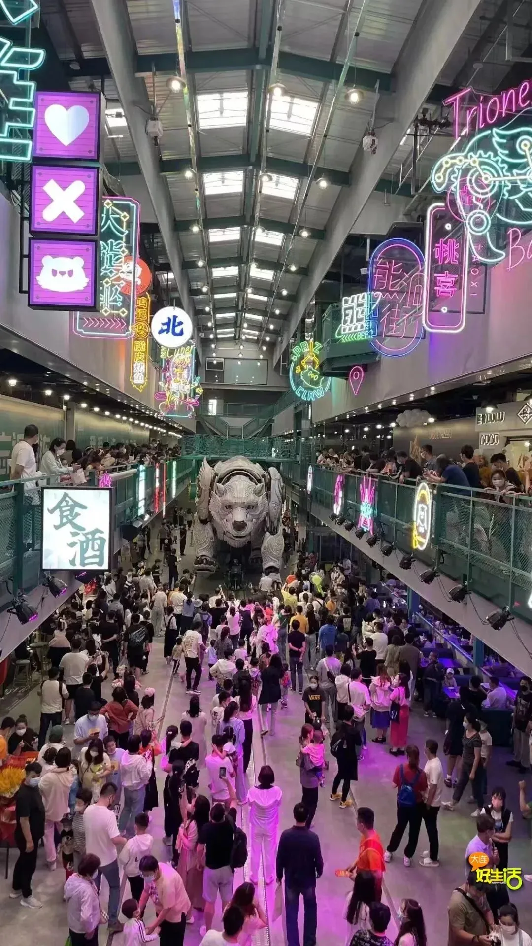 除了巨熊北北,熊洞街更是汇集了美食、游乐、潮流艺术、研学教育、潮玩周边等业态于一体的文商旅综合体,已然成为大连一处“新晋网红打卡地”。