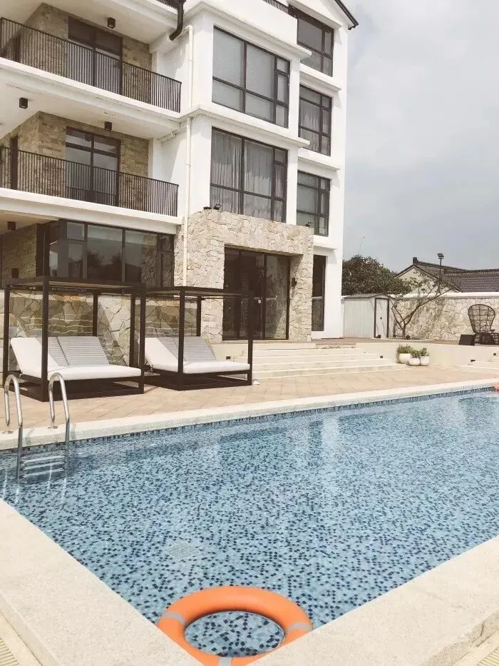粗衣食吾的房间虽然不多,但始终爆满。装修风格高大上,还有露天游泳池。