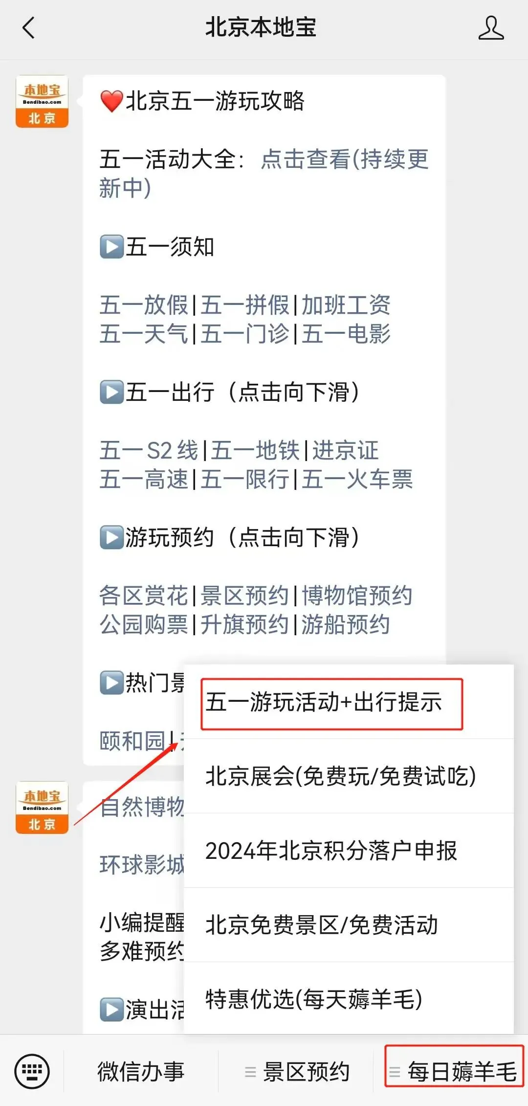 编编这几天正在收集五一活动,后续会发布更多推荐,持续关注【北京本地宝】哦,等不及的小伙伴们,也可以自己查询,操作方法: