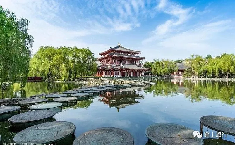 大唐芙蓉园,位于大雁塔东南侧,以芙蓉湖为中心,占地面积达千余亩,其中水域面积三百余亩。该园以唐代文化为主题,结合了唐代园林艺术、文学、音乐、舞蹈、戏剧、绘画等多种文化元素,是一处集观光、娱乐、休闲于一体的展示盛唐风貌的大型文化主题公园。