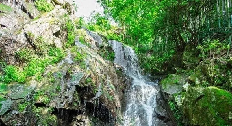 山中也还有几处网红打卡点,最著名的就是“一线瀑”,只见一条银色的瀑布飞流而下,白色的水、青葱的山与绿色的丛林相互掩映,虽没有特别的壮观,却蕴含江南独有的旖旎神韵。