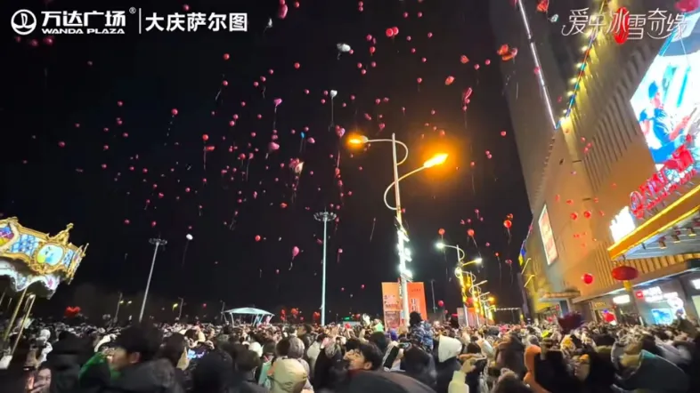 大庆龙舟冰雪乐园建立在万宝湖之上,乐园设有冰上龙舟体验、雪滑梯、冰上小飞侠等十余项冰雪娱乐项目,同时还可以在蒙古包里享受东北特色铁锅炖,可以让市民玩得尽兴、吃得尽兴。