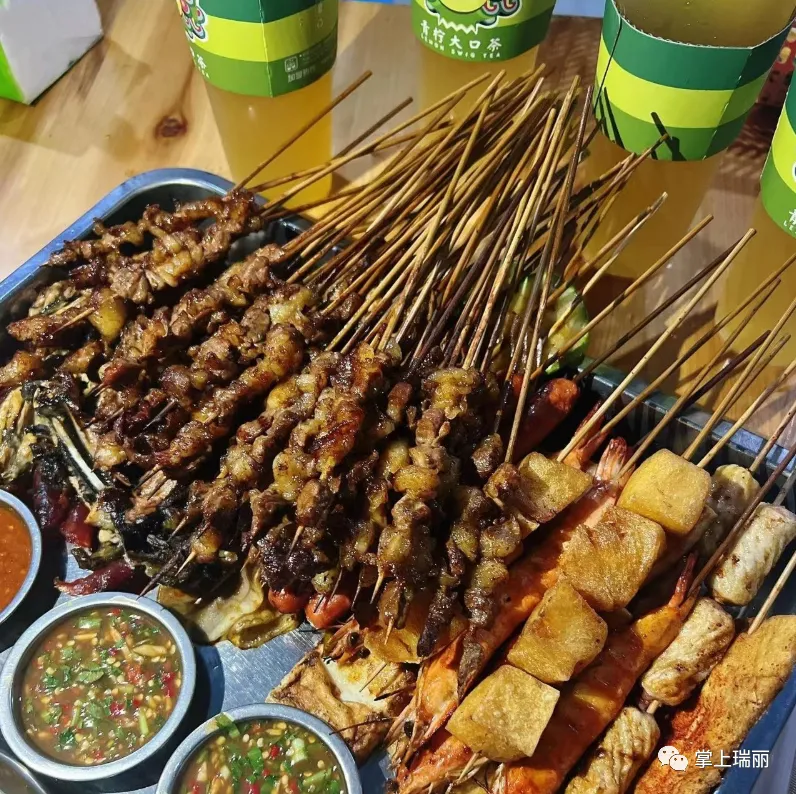 凌晨一点不打烊,像是在等着你,等着你忙完一天的工作来这里做个日程结束仪式。路灯下、烤摊上用最简单的食材给你烹饪一份关于瑞丽的温暖。