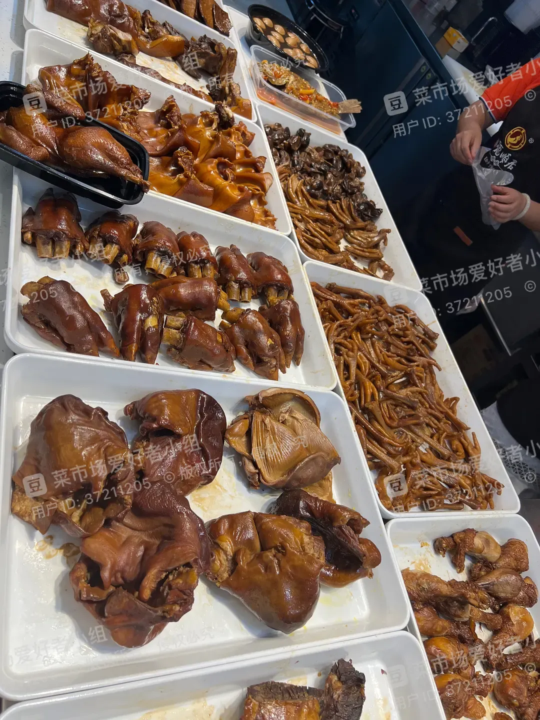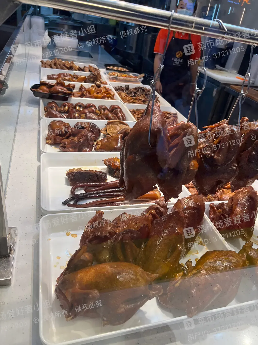 丰富的卤菜。切菜的小姐姐穿了漂亮的裙子,普普通通的工作也要让自己拥有美美的心情!