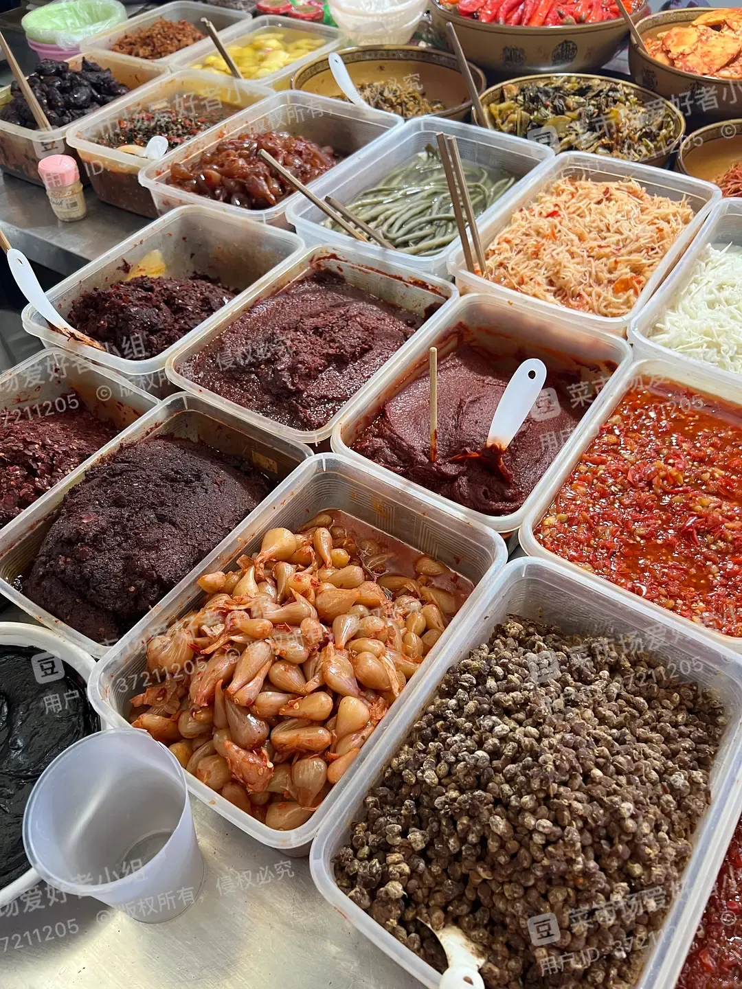 本地酱菜,画面中长得像蒜瓣一样的菜,我们叫藠(jiào)头,不知道外省的朋友们是怎样的吃法?我们是切碎用来炒肉沫,非常下饭!有机会一定要试试!