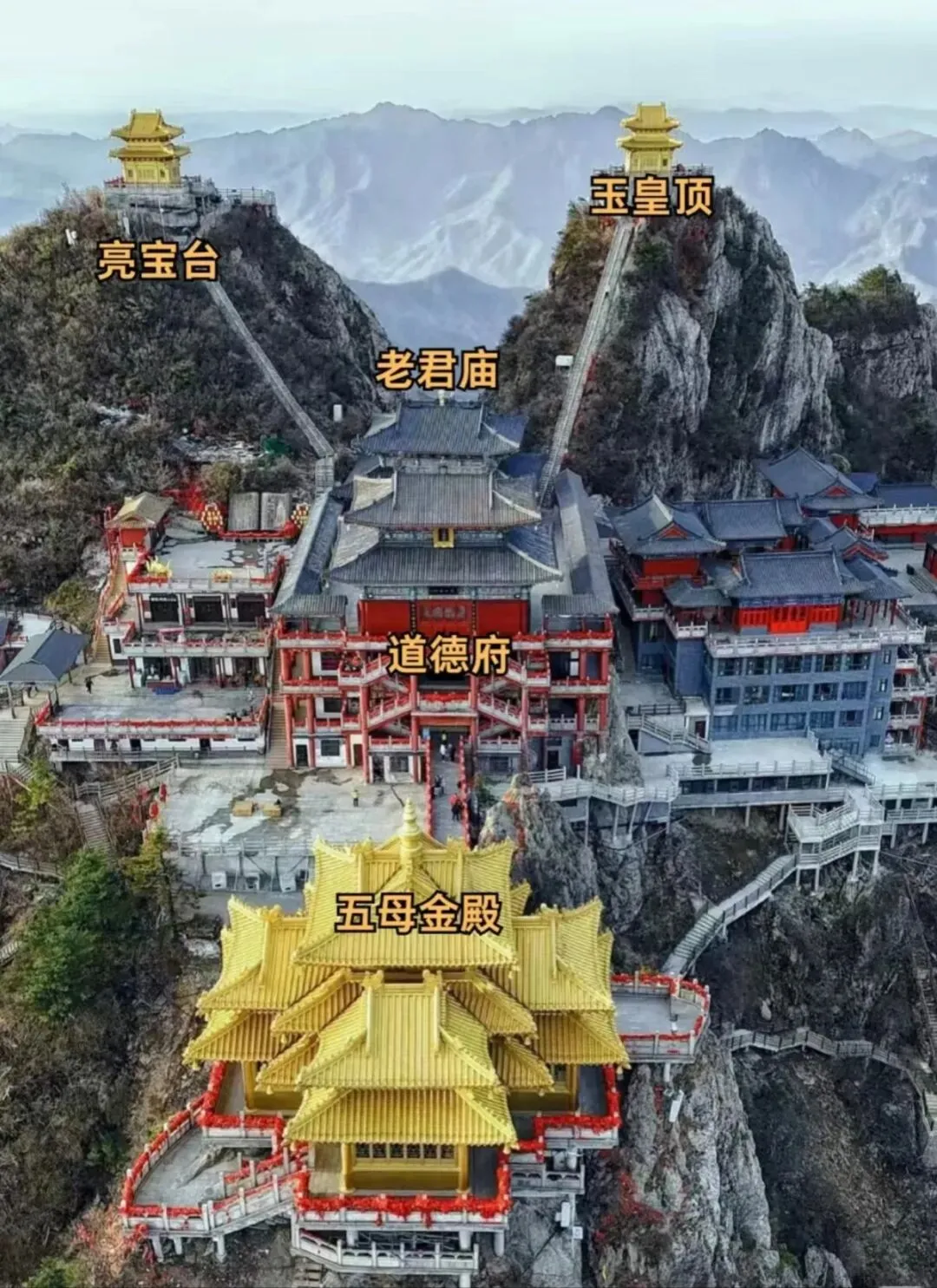 核心建筑:老君庙、道德府、五母金殿、亮宝台、玉皇顶等(5大殿祈福攻略见后文,必看!