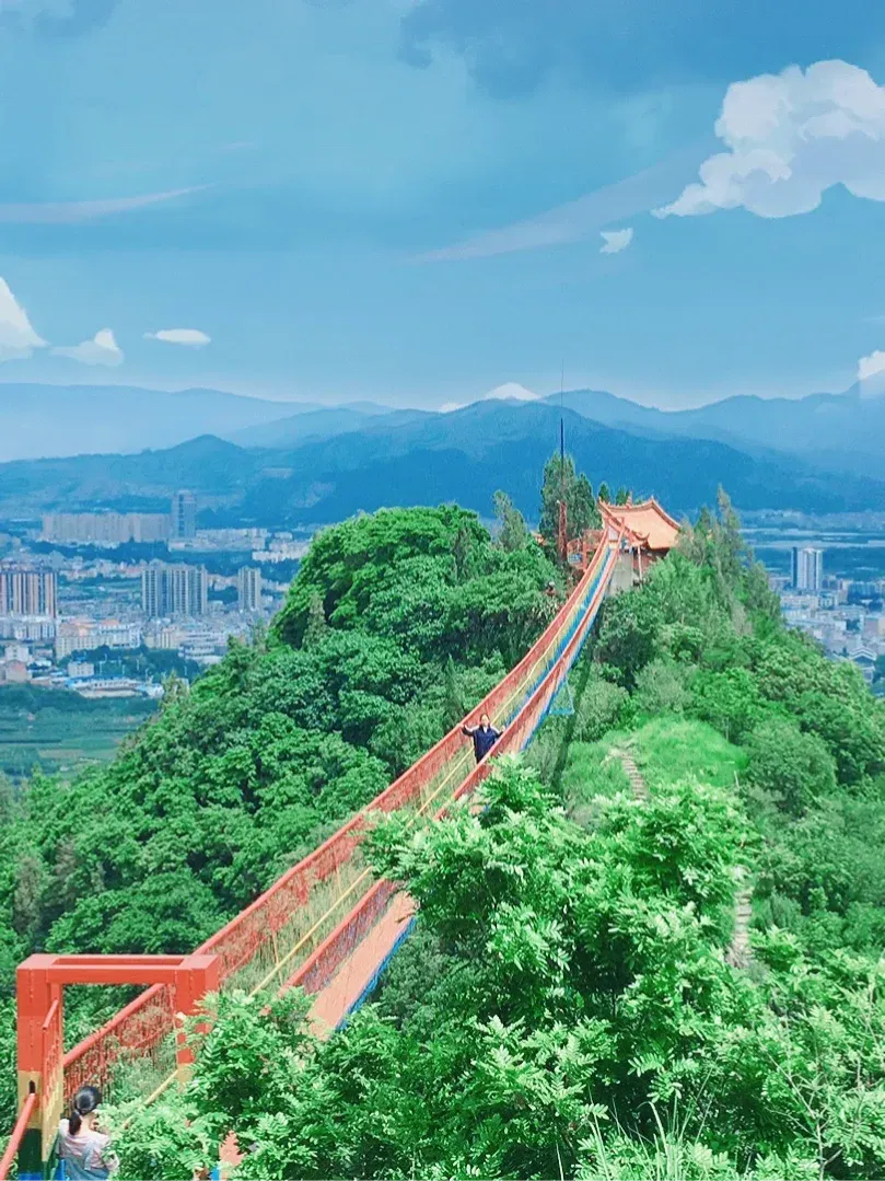 🔥推荐理由:富民伽峰山景区是昆明周边难得的徒步赏景佳地。这里距离昆明主城不远,自驾四十分钟左右可达。春季千亩杜鹃如雪绽放,美不胜收。景区内巨石寨、飞来寺等景点各具特色,彩虹桥横跨山谷,可俯瞰全景。还能体验苗族文化,在梅林烧烤区享受聚会乐趣,更可露营,是亲近自然、放松身心的理想之选。
