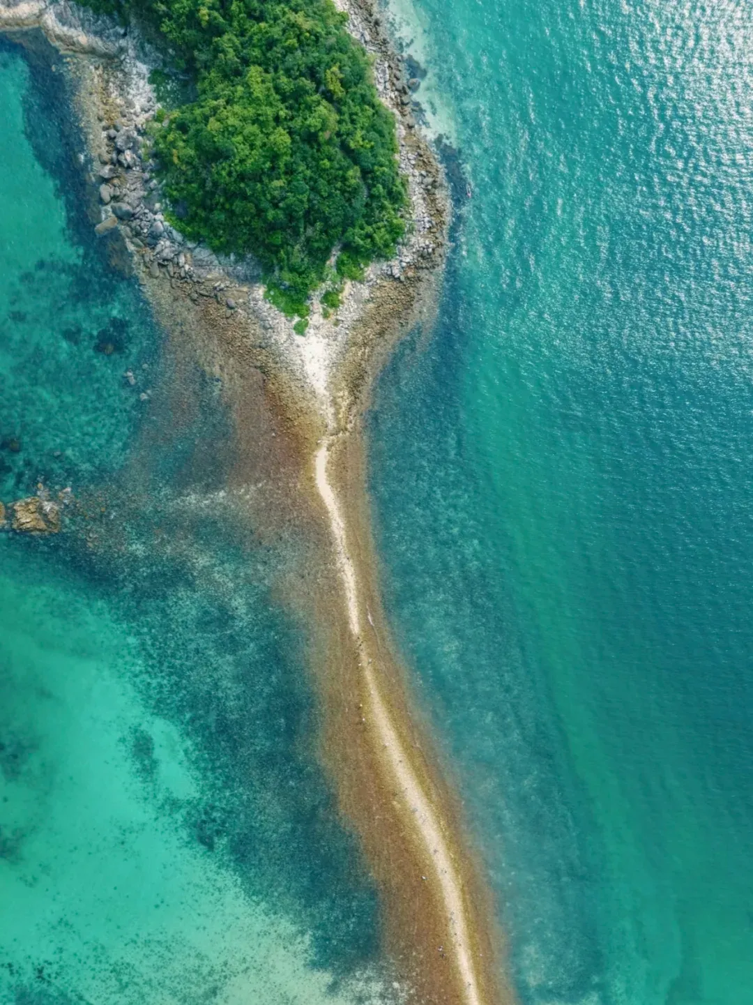 亮点:海水透明度超高,浮潜与鱼群共游,退潮时徒步连岛沙堤,寻找“菠萝包”风化岩石。