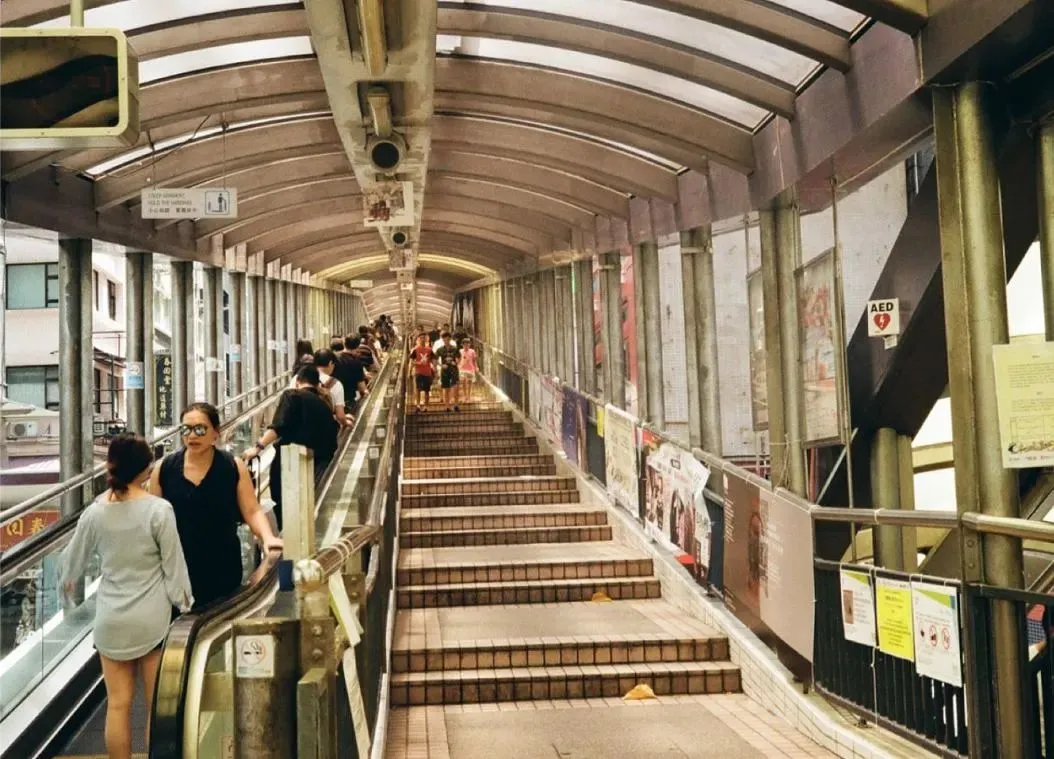 中环半山扶手电梯因电影《重庆森林》王菲经典一幕,吸引无数人前来争相拍摄同款。