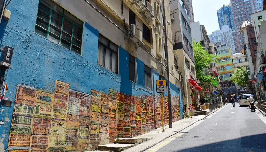 位于香港中环的嘉咸街壁画是近年来大火的景点之一,这是一条仅有五公尺的壁画。壁画的主题是九龙城寨,它具有香港独特的建筑特色。