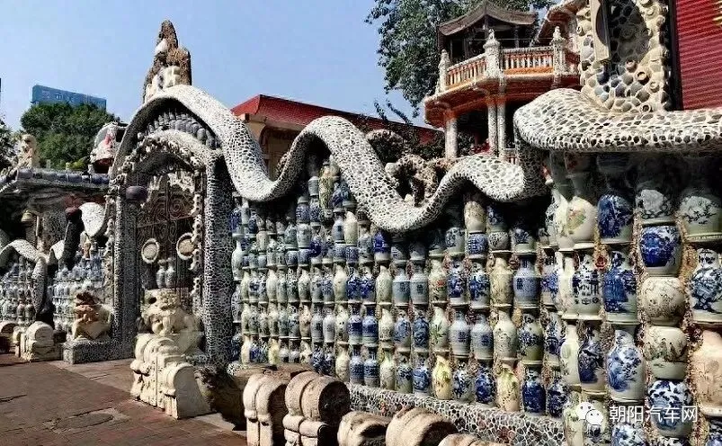 瓷房子,是一幢举世无双的法式建筑,使用了四千多件古瓷器、四百多件汉白玉石雕、七亿多片古瓷片、一万三千多个古瓷盘和古瓷碗、三百多个瓷猫枕、三百多个汉白玉唐宋石狮子、三百多尊历代石雕造像、二十多吨水晶石和玛瑙,被誉为“中国古瓷博物馆”。