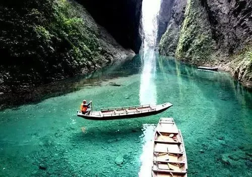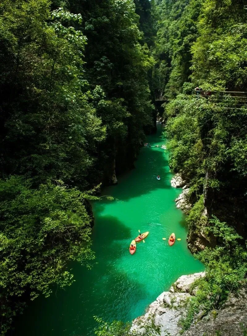 都说地心谷归来不看谷,恩施地心谷的美的让人过目不忘。其中以险著称的舒心谷,石壁蜿蜒曲折,碧蓝的水流经谷底,泛舟谷中奇妙至极。