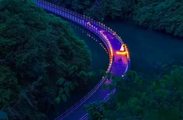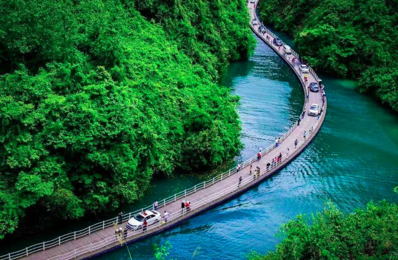 此外这里还有亚洲最长的户外扶手观光电梯、惊险刺激的绝壁长廊,中国最大峡谷山水实景音乐剧《龙船调》都非常值得体验。