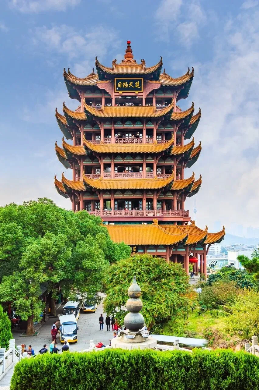 建于蛇山顶的黄鹤楼,高达51.4米,10万多块黄色琉璃瓦覆盖,蔚为壮观。登高楼上,武汉三镇风光尽收眼底,震撼至极。