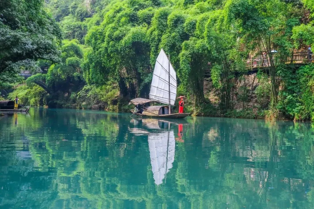 透明见底的水面,宛若晶莹剔透的翡翠,更别说行舟水中,更是无比惬意的体验,随便一拍都能刷爆朋友圈。