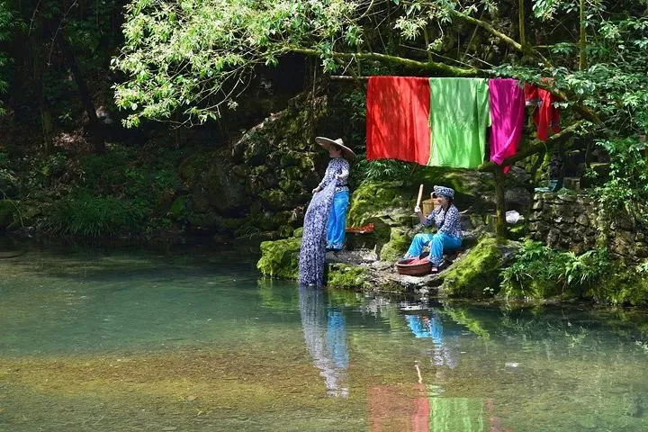 一泓碧绿的龙进溪水,蜿蜒于山中,乘坐乌篷船溯溪而上,时而古船倩影,时而飞瀑碧潭,诗情画意的山水画卷就此展开。