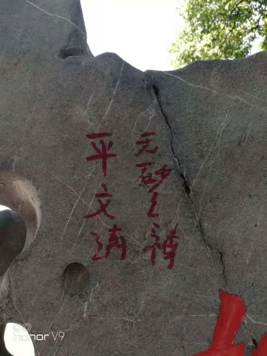 石碑上被涂上了七个红字。