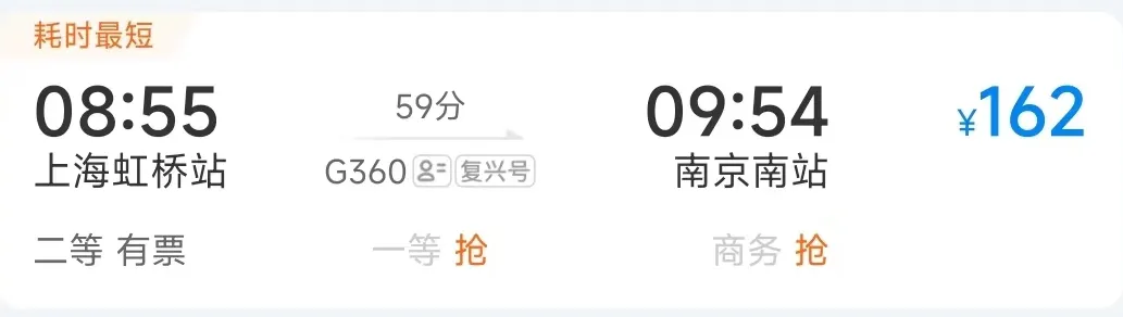 高铁最快运行时间:59分钟
