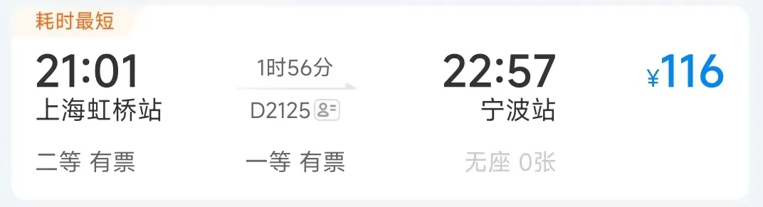 高铁最快运行时间:1小时56分钟