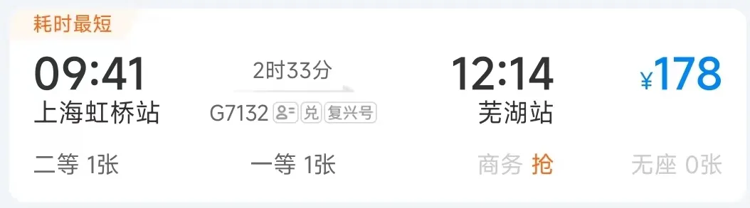 高铁最快运行时间:2小时33分钟