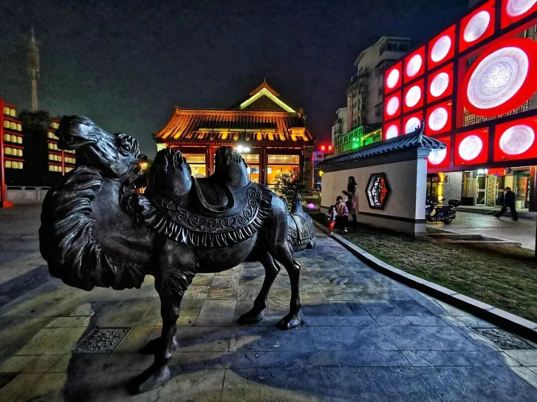 当你漫步在这里,灯笼、驼铃、灯柱等历史文化元素一一展现在你的面前,有古色古香的韵味,亦有丝绸之路文化的融合。来这里品品美食,逛逛街区,再跟洛阳八大景之一的“铜驼暮雨”来张合照。实在是太有意思了!