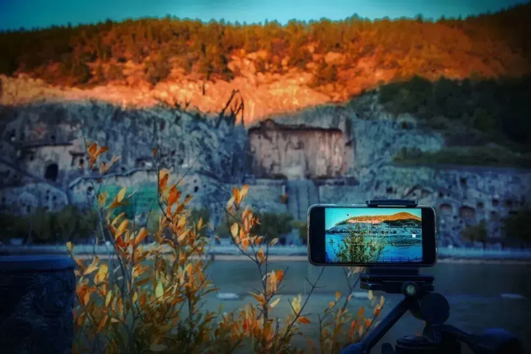 夕阳西下时,站在奉先寺对岸的观景台,看余晖为大佛镀上一层金光,映在汤汤伊水之上,仿佛能通过倒影看到千年前的故事。这一刻,你真的会忘记时间的流逝,沉浸在石刻艺术氛围中。