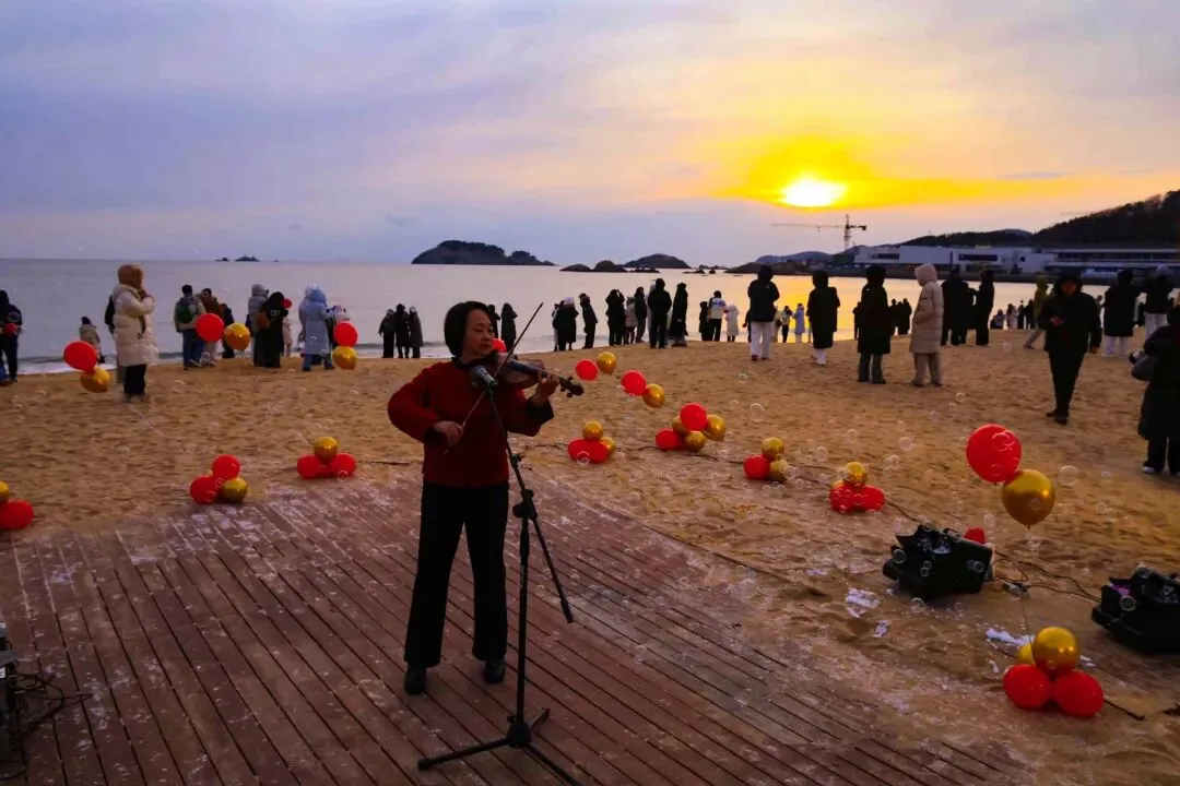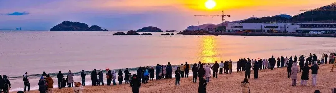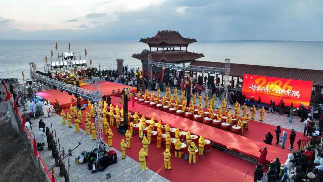 当新年的第一缕阳光跃出海面,金色光芒瞬间洒满千里海岸。半月湾、成山头等观日胜地早已人头攒动,人们或举起手机记录震撼瞬间,或与身旁亲友相拥欢呼,以一场浪漫的海上日出,叩响2026年的大门。“寻光逐海·生机启岁”新年音乐会、祭日大典等特色活动,更为这场晨光之约增添了文化与惊喜。