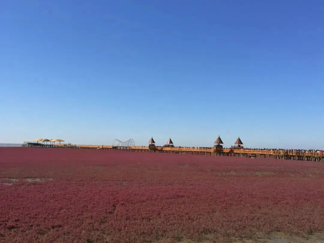 红海滩国家风景廊道 :拥有世界罕见的红色海岸线。每年秋季,碱蓬草由绿变红,绵延数十公里,宛如红色地毯。这里还融合了湿地景观,可观赏到丹顶鹤等珍稀鸟类,游客可漫步栈道、乘船游览,享受独特的自然之美。