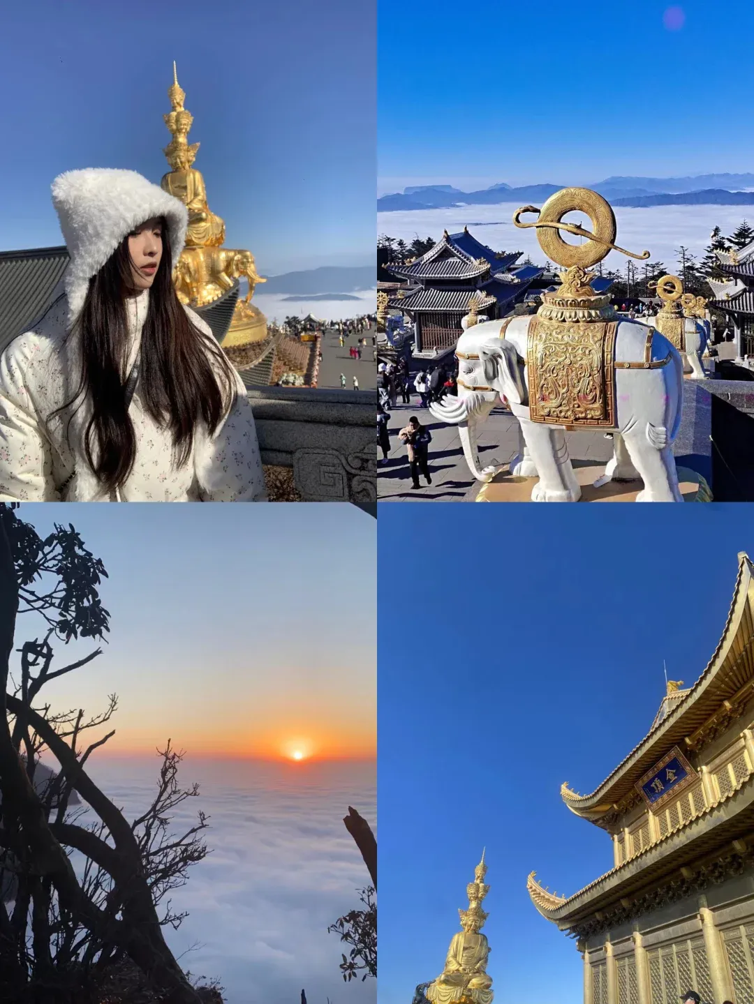 第五天: 从成都出发-游玩峨眉山一整天,游玩了峨眉山金顶,在四面金佛下拍照打卡、祈福,看了峨眉山云海以及调皮的峨眉山猴子