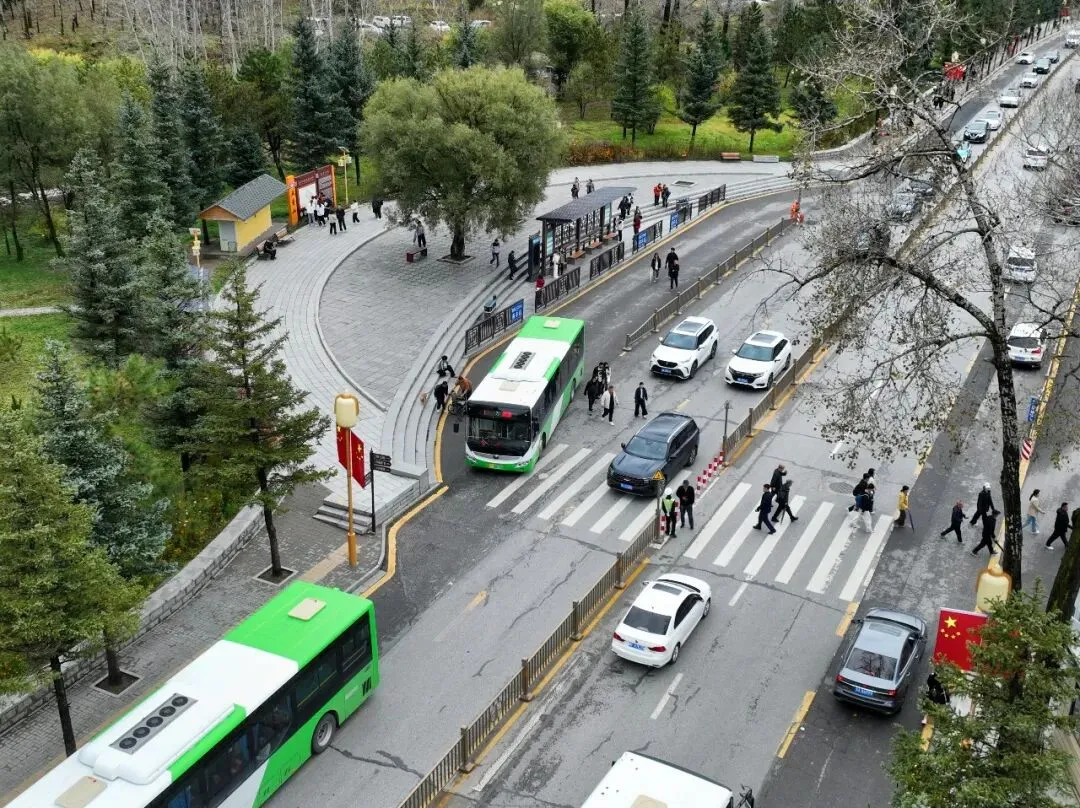 为应对高峰客流、保障游览品质,五台山景区以智治为核心,全年严格落实限量、预约、错峰机制,对来山游客及车辆实行24小时昼夜预约管控。通过科学设定每日预约上限、本地车辆单双号限行等精细化措施,从源头有效平衡了车流与人流。在交通组织上,景区交警大队创新实行一点一策、分时管控,并将责任层层落实至各线、段、点,形成了高效联动的立体管控网络。同时,智能化手段为高效运转提供了有力支撑,智能监控系统实现了对核心交通路线、主要停车场及接驳站台的全时全域覆盖与动态监测,为科学调度提供了精准依据。在五一”“国庆等重要假期节点,景区提前投入充足的公交运力与应急车辆,各站点工作人员全天候值守,形成了监测-调度-转运的闭环,有力保障了大客流期间交通主动脉的畅通无阻与游客换乘的高效有序。