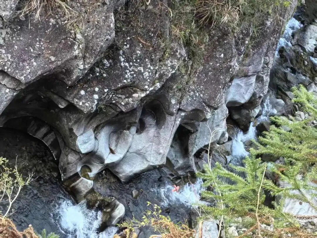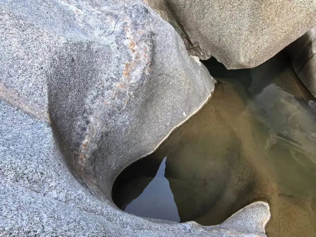 如今我再踏上这片土地,清洌溪水依旧淙淙,花岗岩河床上的冰臼还是那般奇崛——或浑圆如碗或深邃如井,内壁被岁月磨得温润,串珠似的石臼里,瀑花跳跃仍如当年。
