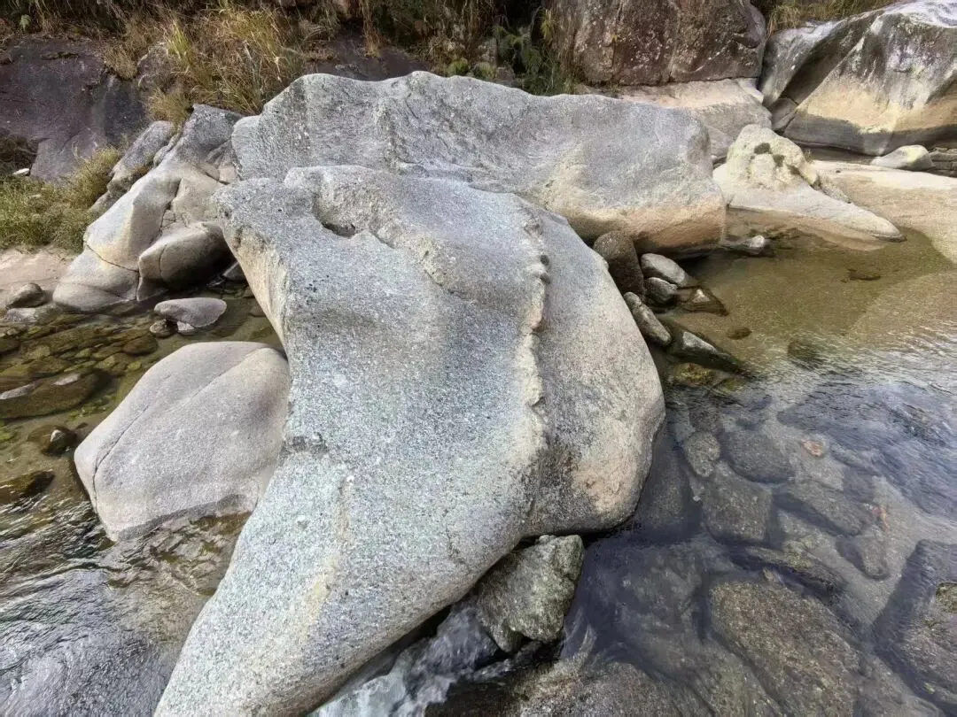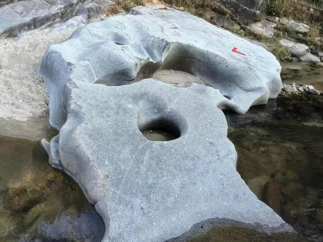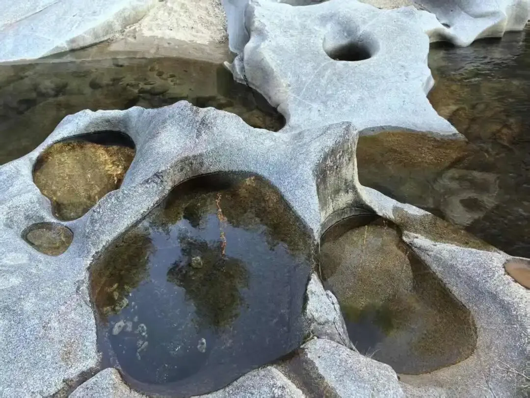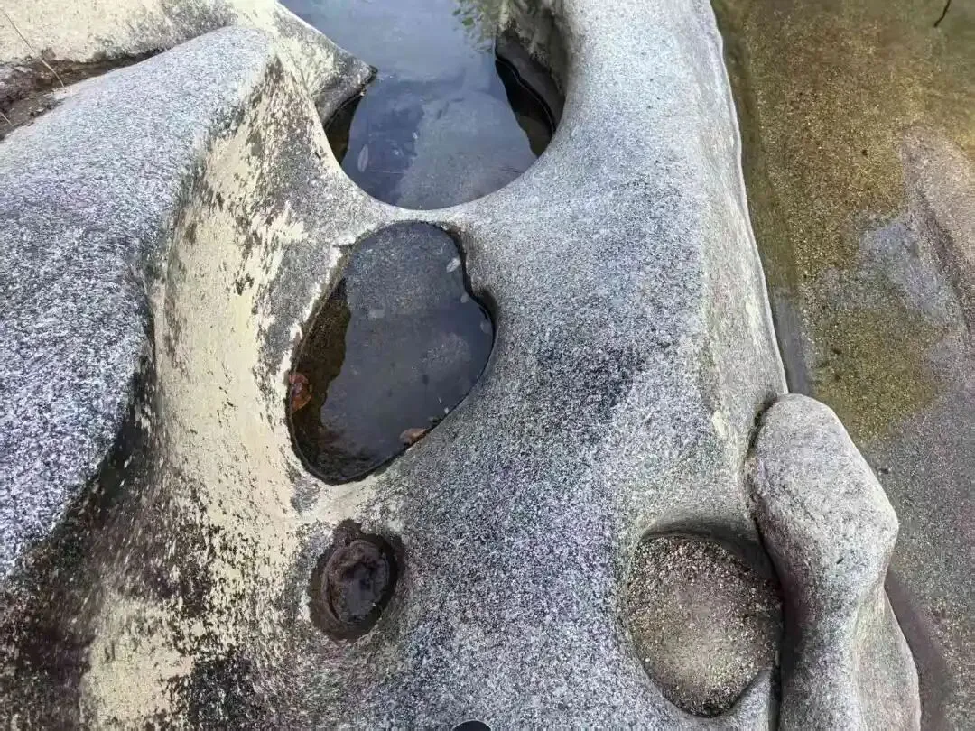 有资料记载,这片奇景的诞生,要追溯到两三百万年前的第四纪冰川时代。彼时桂东大地被厚重冰层覆盖,随着气候转暖,冰川消融产生的巨量融水,顺着冰川裂隙垂直下泄,形成了兼具巨大势能与冲击力的“圆柱体水钻”。融水裹挟着冰碎屑、岩屑等“研磨工具”,在坚硬的花岗岩河床上持续冲击、旋转、研磨,如同大自然握着巨型钻头,历经百万年的精雕细琢,最终凿刻出这些“口小、肚大、底平”的奇特凹坑——这便是地质学家口中的“冰臼”,也是古冰川运动留下的珍贵遗迹。桂东江山冰臼群是我国罕见的大型冰臼群,其完好的形态与丰富的数量,为研究古气候、古环境变迁提供了鲜活的实物证据。