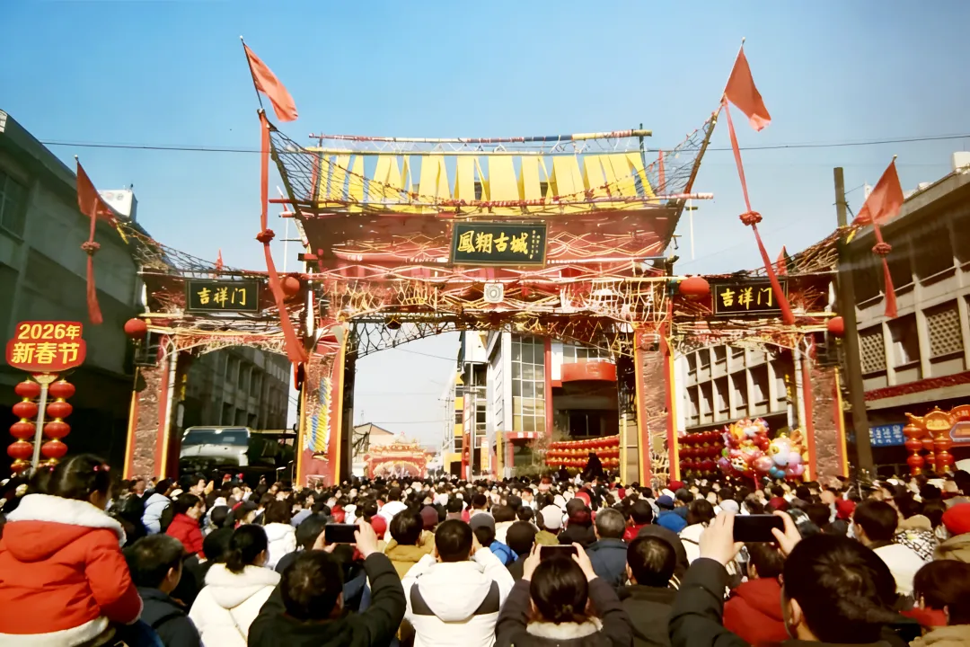 原来很多的游客在南门坡上在与太谷传统非遗的彩牌楼拍照合影,原来太谷城里到处都有的东西,在消失二十年之后,又成为了太谷古城特色而稀奇的“春节非遗艺术品”,或许是因为很多的00后都没有见过。