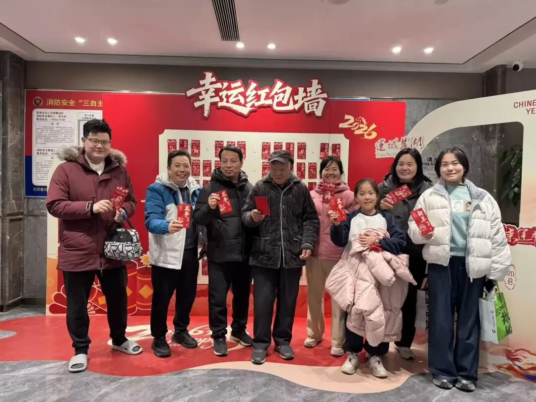 100%中奖率,现金红包、礼品券、优惠券……福气满满,人人有礼。抽中红包的游客笑容绽放,新年的好彩头,就这样实实在在地握在了手里。