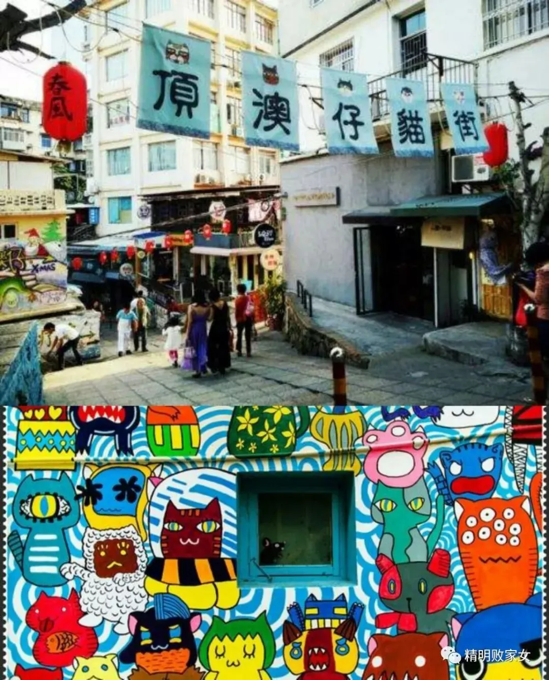 街道上到处都是可爱的猫猫猫,涂鸦、雕像、彩旗,萌萌哒。地方比较小,所以游客不算很多,可以愉快地找猫咪合影!私心推荐猫街上的四果汤,加了陈皮味道整个升华,止渴解馋来一碗,6块钱,童叟无欺!