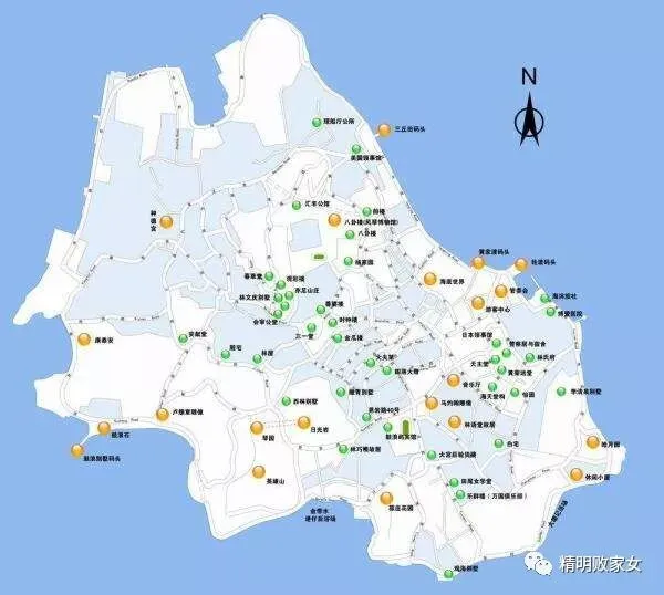虽然鼓浪屿好像已经被大家说滥掉了,但其实,太多的游客都只集中在鼓浪屿的东侧和东南侧(就是大部分人乘船上岛的一侧),即下图右边这些文字密集的地方