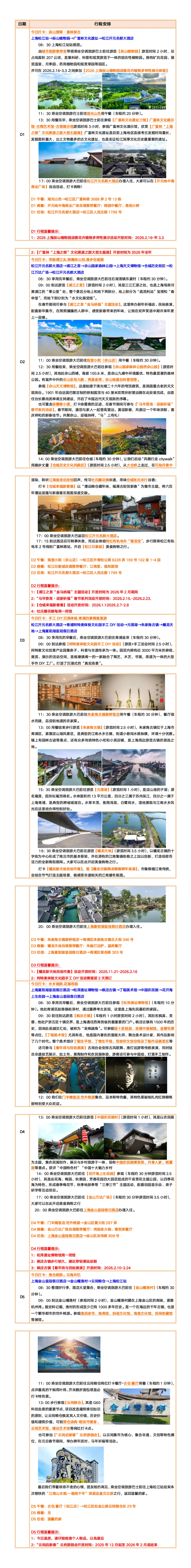 08:30--12:00【上海影视乐园】(车墩镇车亭公路211号西门),为中国十大影视基地之一。《繁花》取景地上海影视乐园“黄河路”开放后掀起参观热潮。南京大屠杀的战争电影《南京照相馆》近七成镜头在这里拍摄。热播谍战剧《叛逆者》许多镜头在此拍摄。门票80元/人,开放时间08:30-16:30。2026.2.15-2.23期间上海影视乐园推出新春游园会,打造独特的“冬日老上海”沉浸式体验,为游客重现一场风花雪月的海上旧梦。小贴士:建议身着旗袍或中山装,漫步上海复古街区,定格满是民国韵味的年代感大片。