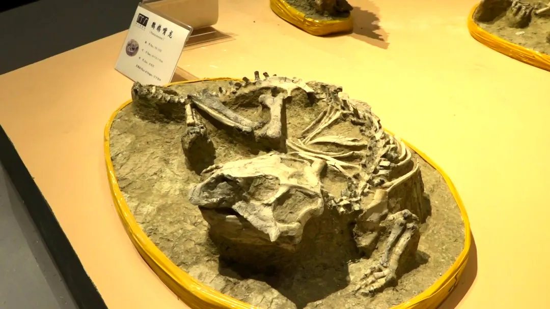 在我身后的这一个玻璃展柜里面就是恐龙蛋了,恐龙蛋一般都是以一窝一窝的形式来呈现。长条形、椭圆形的以肉食性的恐龙为主,圆形的一般是以植食性的恐龙为主。