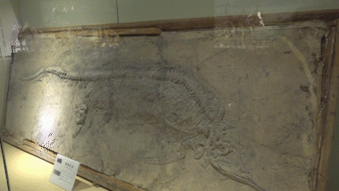 在展厅当中,中生代的代表则要属鹦鹉嘴龙了。鹦鹉嘴龙是亚洲独有的一种植食性的恐龙,因为其嘴部的形状非常像是鹦鹉的嘴,而因此得名。据最新研究发现,鹦鹉嘴龙在幼年时期主要是四肢爬行,随着后期后腿的生长速度加快之后,则主要是以后腿行走,前肢的功能则演变为抓挠身体或触碰物品。鹦鹉嘴龙主要是以一些,浆果或小型的植物树叶为食,所以它也是非常典型的一种植食性的恐龙。