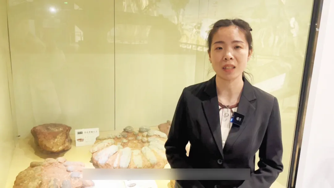 而在展柜中展示的白垩纪时代的恐龙蛋则是在江西赣州发现。恐龙蛋化石是恐龙类动物所生下的能传宗接代的生殖产物。形态有圆形、卵圆形、椭圆形、长椭圆形和橄榄形等多种形状。恐龙蛋化石的大小悬殊,小的与鸭蛋差不多,最大直径不足10厘米;大者的长径超过50厘米,它的外表面光滑或具点线饰纹。