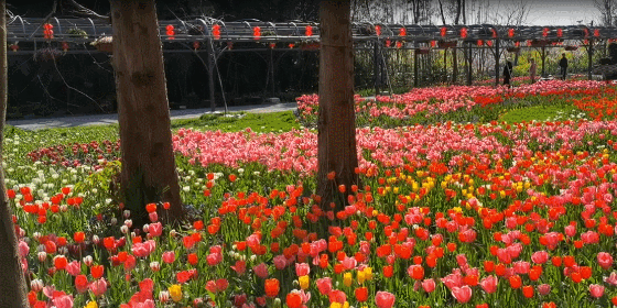 出园线路:自芳草地会场出发,经桂花路二月兰花海、紫藤长廊、水杉西路郁金香风貌区到达出口。
