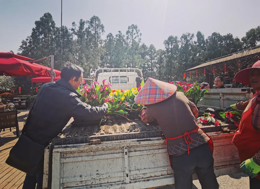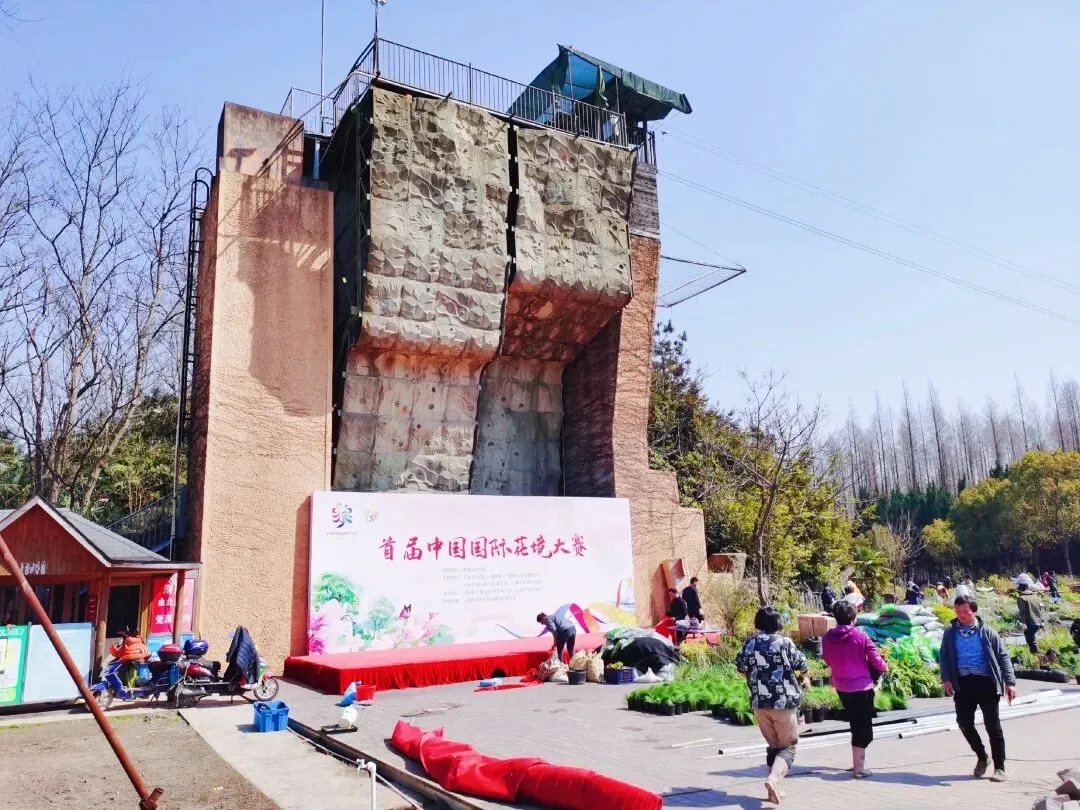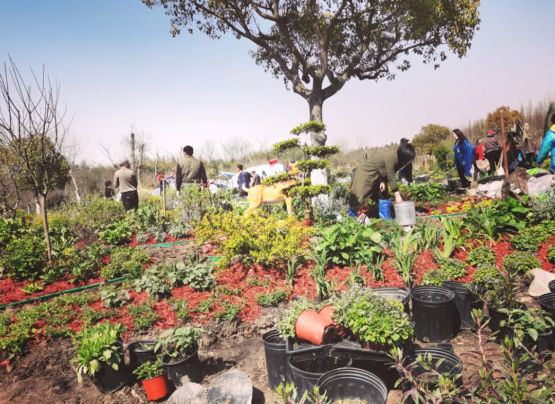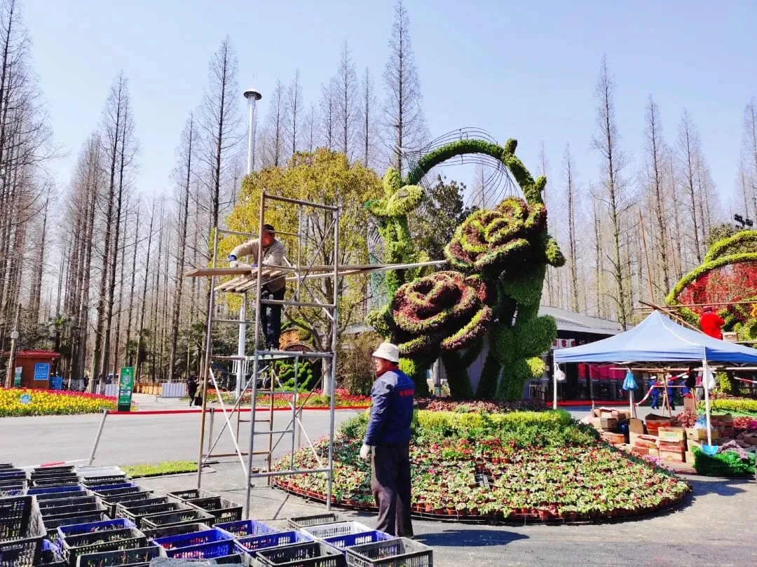 阿姨们戴着草帽忙碌地搬花、种花。花镜大赛区内的参赛者们正在打造自己的“花镜”……微风吹吹,阳光暖暖,整个园区一派热火朝天。