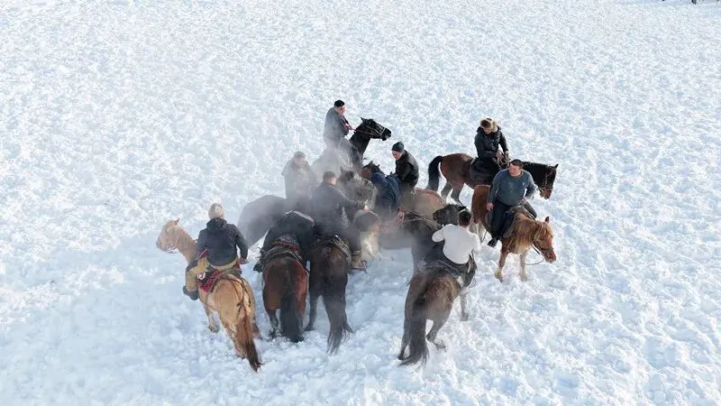 近年来,禾木紧紧依托地域优势及丰富的冰雪旅游资源,将民俗元素融入乡村旅游中,引爆冬季冰雪旅游市场,让“冷”资源转化为“热”经济,以旅游新业态拓宽农牧民群众增收渠道。此次元旦民俗冰雪活动,以雪为媒、以民俗为魂,不仅让游客沉浸式体验了禾木冰雪民俗的独特魅力,感受了新年的喜庆氛围,还进一步传承弘扬了民族传统文化,丰富了禾木冰雪旅游内涵,为禾木冰雪经济与乡村旅游融合发展注入新活力。(文图/加尔恒 波拉提汗)