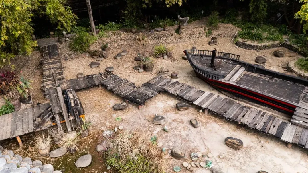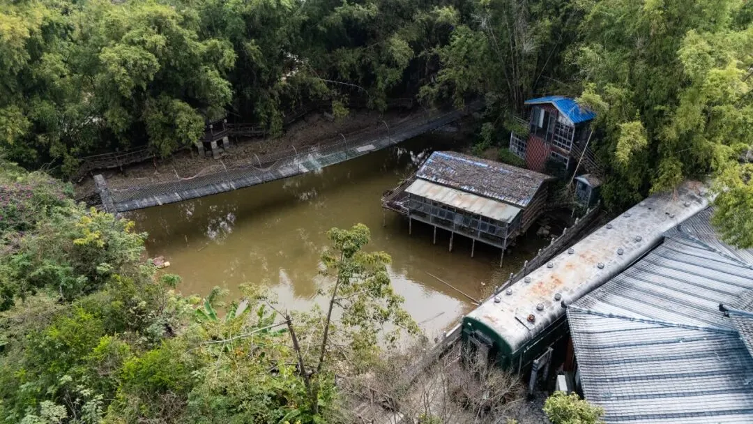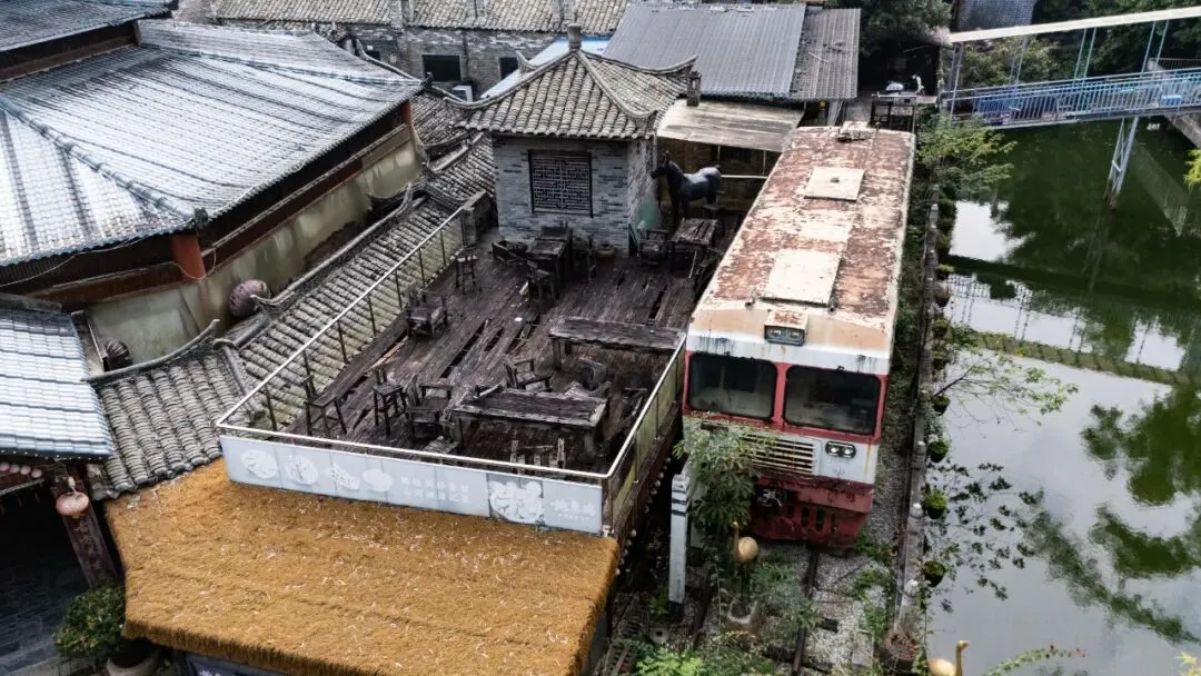 走进去,青砖黛瓦的屋舍显得陈旧斑驳,木制栏杆因岁月侵蚀而腐朽,曾经作为景区标志的旧火车头如今锈迹斑斑,静静地停在那里,似乎连呼吸声都变得微弱。