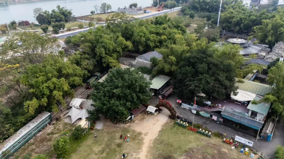 景区内精心保存和修复了一批明清时期和民国时代的古建筑,灰瓦青砖的建筑群散发着岁月的韵味。那列旧火车头更是成为游客必打卡的景点之一,旁边的铁轨、站台和老式信号灯,构成了一幅怀旧的画面。