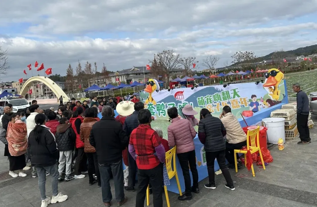 萌宠区人潮涌动,欢笑声此起彼伏。正门大坪的“套鸭子”趣味区人气爆棚!上千名游客排成长龙,手持套圈跃跃欲试。成功套中鸭子的游客喜提“战利品”,围观人群掌声雷动,现场气氛推向高潮。